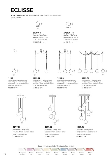 Plafoniera / Ceiling lamp Plafoniera / Ceiling lamp Plafoniera / Ceiling lamp vetro/glass Ø14 cm - Cavo/Cable 150 cm vetro/glass Ø14 cm - Cavo/Cable 250 cm vetro/glass Ø14 cm - Cavo/Cable 250 cm