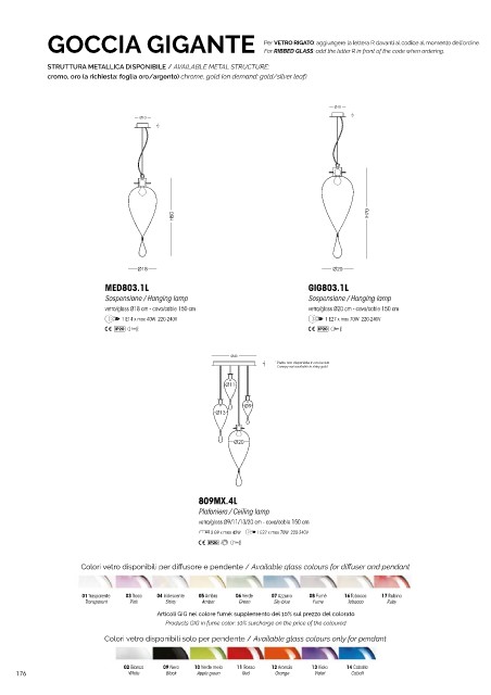 Colori vetro disponibili solo per pendente / Available glass colours only for pendant