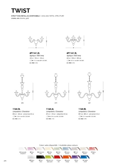 270 02 Bianco 09 Nero 10 Verde mela 11 Rosso 12 Arancio 13 Viola 14 Cobalto 271