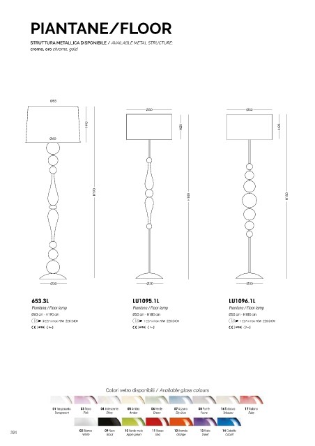 324 02 Bianco 09 Nero 10 Verde mela 11 Rosso 12 Arancio 13 Viola 14 Cobalto 325