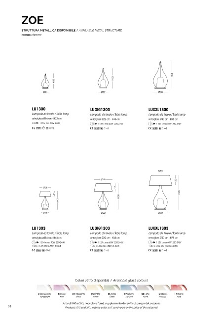 vetro/glass Ø16 cm - H33 cm vetro/glass Ø22 cm - H43 cm vetro/glass Ø30 cm - H58 cm vetro/glass Ø16 cm - cavo/cable 50 cm vetro/glass Ø16 cm - cavo/cable 150 cm vetro/glass Ø22 cm - cavo/cable 150 cm vetro/glass Ø30 cm - cavo/cable 150 cm