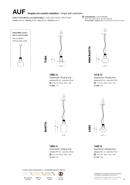 vetro/glass Ø19 cm - cavo/cable 150 cm vetro/glass Ø21 cm - cavo/cable 150 cm