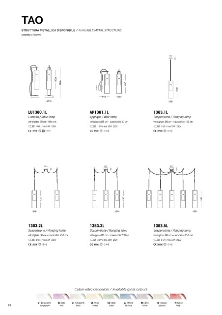 Colori vetro disponibili / Available glass colours Colori metallizzati vetro disponibili / Metallic glass colours available