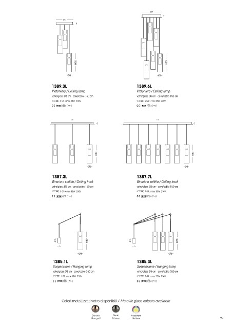 Colori vetro disponibili / Available glass colours Colori metallizzati vetro disponibili / Metallic glass colours available