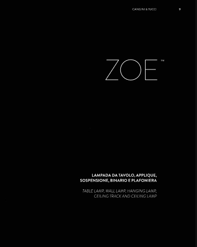 8 CANGINI & TUCCI 9 ZOE LAMPADA DA TAVOLO, APPLIQUE, SOSPENSIONE, BINARIO E PLAFONIERA TABLE LAMP, WALL LAMP, HANGING LAMP, CEILING TRACK AND CEILING LAMP