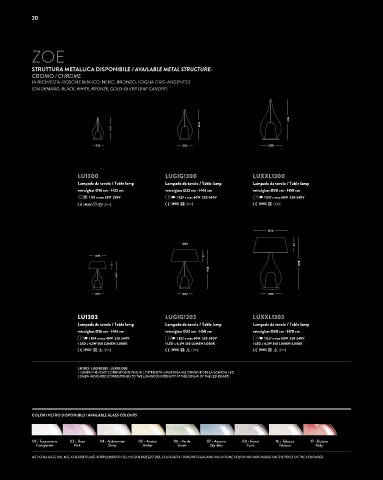 COLORI VETRO DISPONIBILI / AVAILABLE GLASS COLOURS COLORI METALLIZZATI VETRO DISPONIBILI / METALLIC GLASS COLOURS AVAILABLE