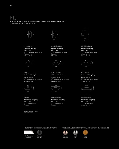 COLORI VETRO DISPONIBILI / AVAILABLE GLASS COLOURS COLORI METALLIZZATI VETRO DISPONIBILI / METALLIC GLASS COLOURS AVAILABLE - CAVO ELETTRICO SEMPRE IN GOMMA NERO / ALWAYS WITH BLACK RUBBER ELECTRIC CABLE