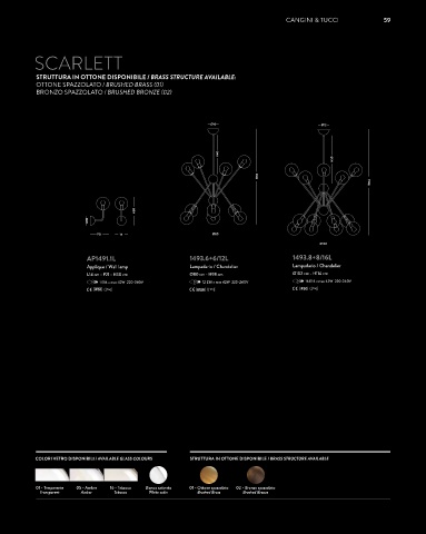 COLORI VETRO DISPONIBILI / AVAILABLE GLASS COLOURS STRUTTURA IN OTTONE DISPONIBILE / BRASS STRUCTURE AVAILABLE