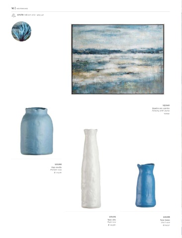 10 | mediterraneo l’oca nera - home 2021 | 11 1P170 Indicum avio › pag 331 1Q140 Quadro con cornice Painting with frame 122x92 1O190 Vaso medio Medium vase Ø 21x30h 1O191 1O189 Vaso alto Vaso basso High vase Short vase Ø 10x38h Ø 11x23h