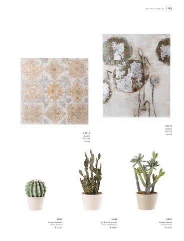 162 | ethno chic l’oca nera - home 2021 | 163 1Q134 Quadro Painting 1Q135 80x100 Quadro Painting 80x80 1N01 1N02 1N03 Grusone piccolo Fico d’India piccolo Cactus piccolo Small grusone Small prickly pear Small cactus Ø 12x18h Ø 12x32h Ø 12x31h