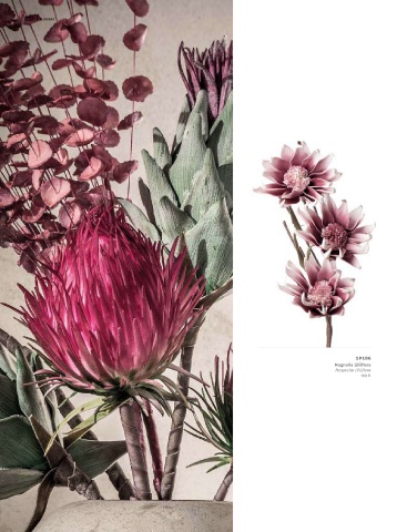 3 l’oca nera - home 2021 | 333 332 | flowers32 | flowers 1P134 Protea Protea 75 h 1P126 Protea Prince Protea Prince 100 h 1P106 Magnolia Liliiflora Magnolia Liliiflora 103 h 1P109 Dalia Dahlia 80 h 1P133 Eucalipto rosa Eucalyptus, pink 85 h